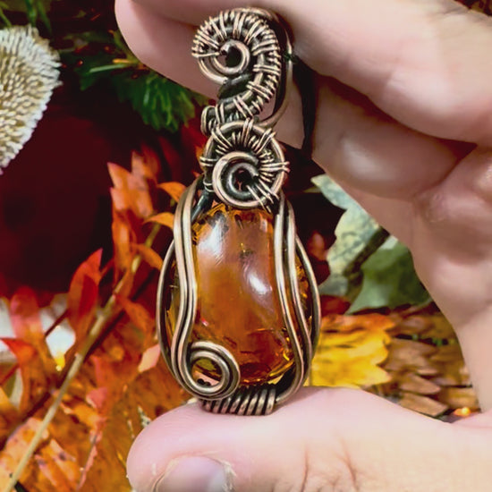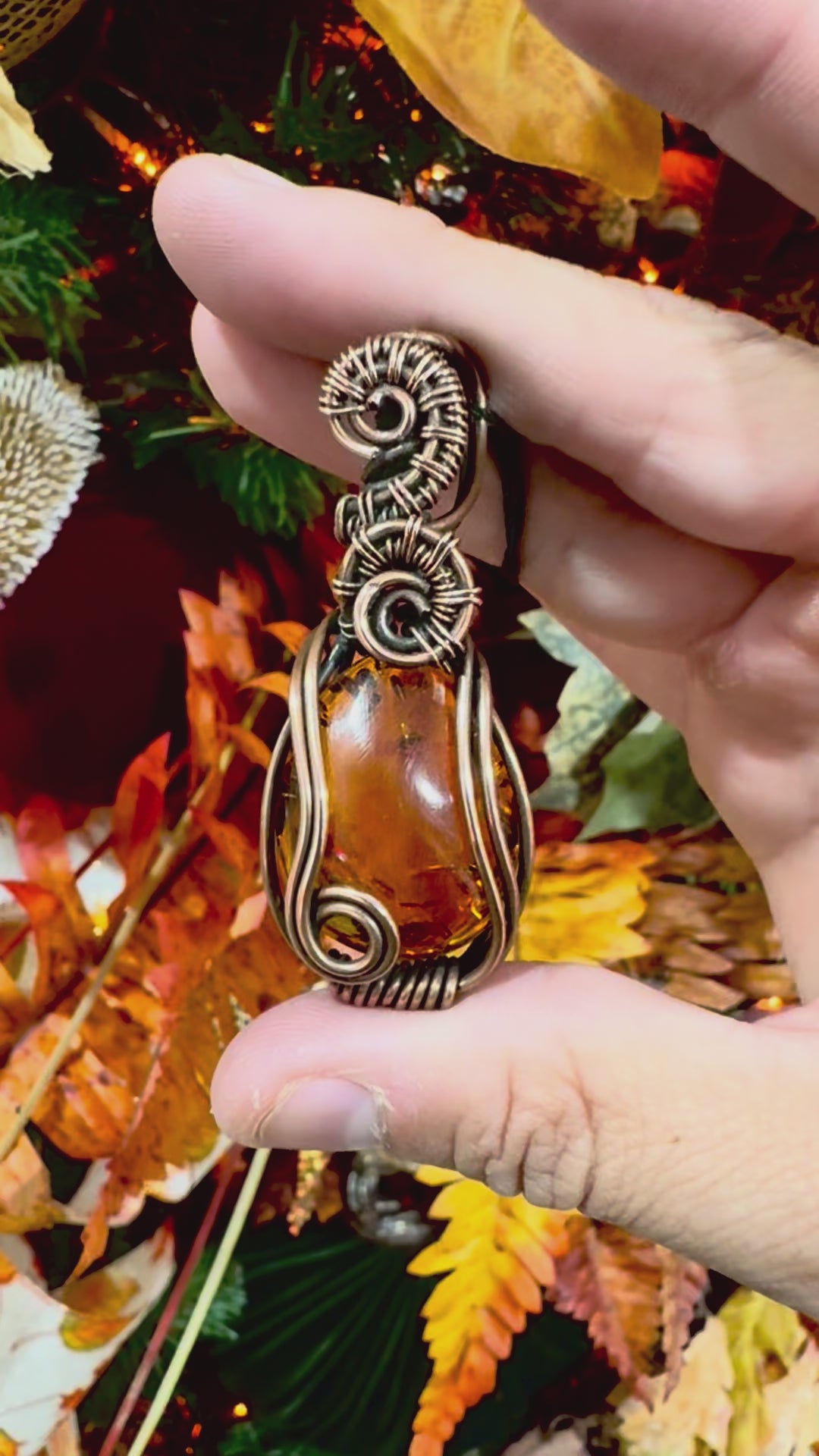 Thirza, the name simply meaning “delightful harvest” is another NAMED piece from the Gonzalecaries collection. Thirza construction is 100% copper, wrapped in a way to signify a vine coiled at her bale. The stone is not a stone but Polish Amber, solidified and formed into what Thirza is today.